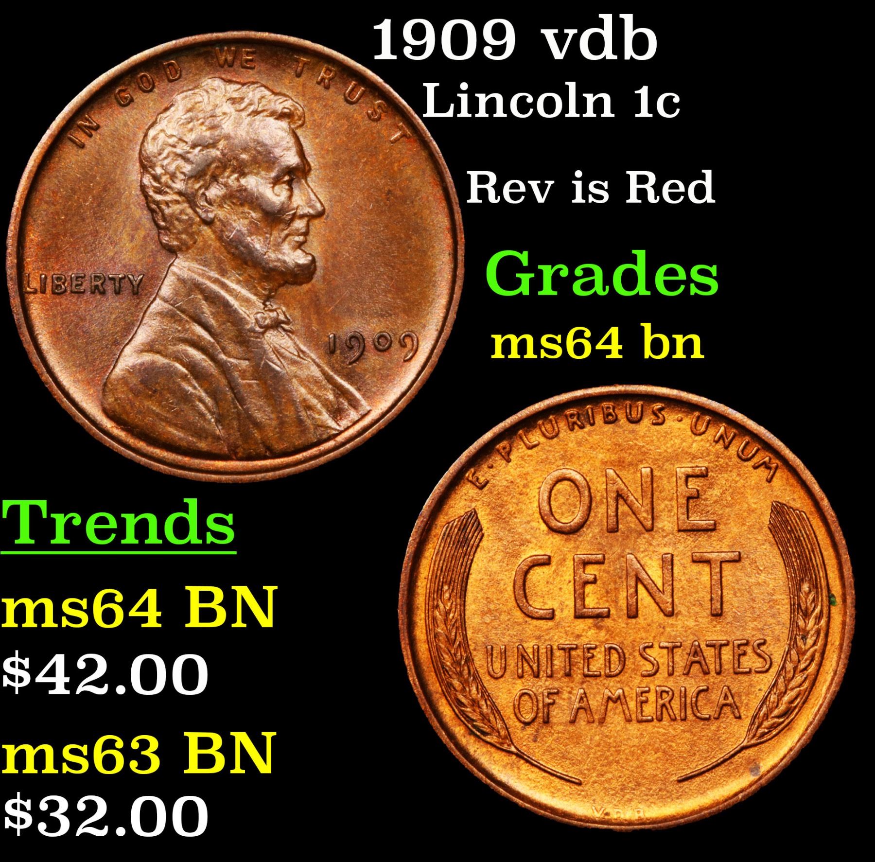 1909 vdb Lincoln Cent 1c Grades Choice Unc BN. Always sought after date. Always popular.