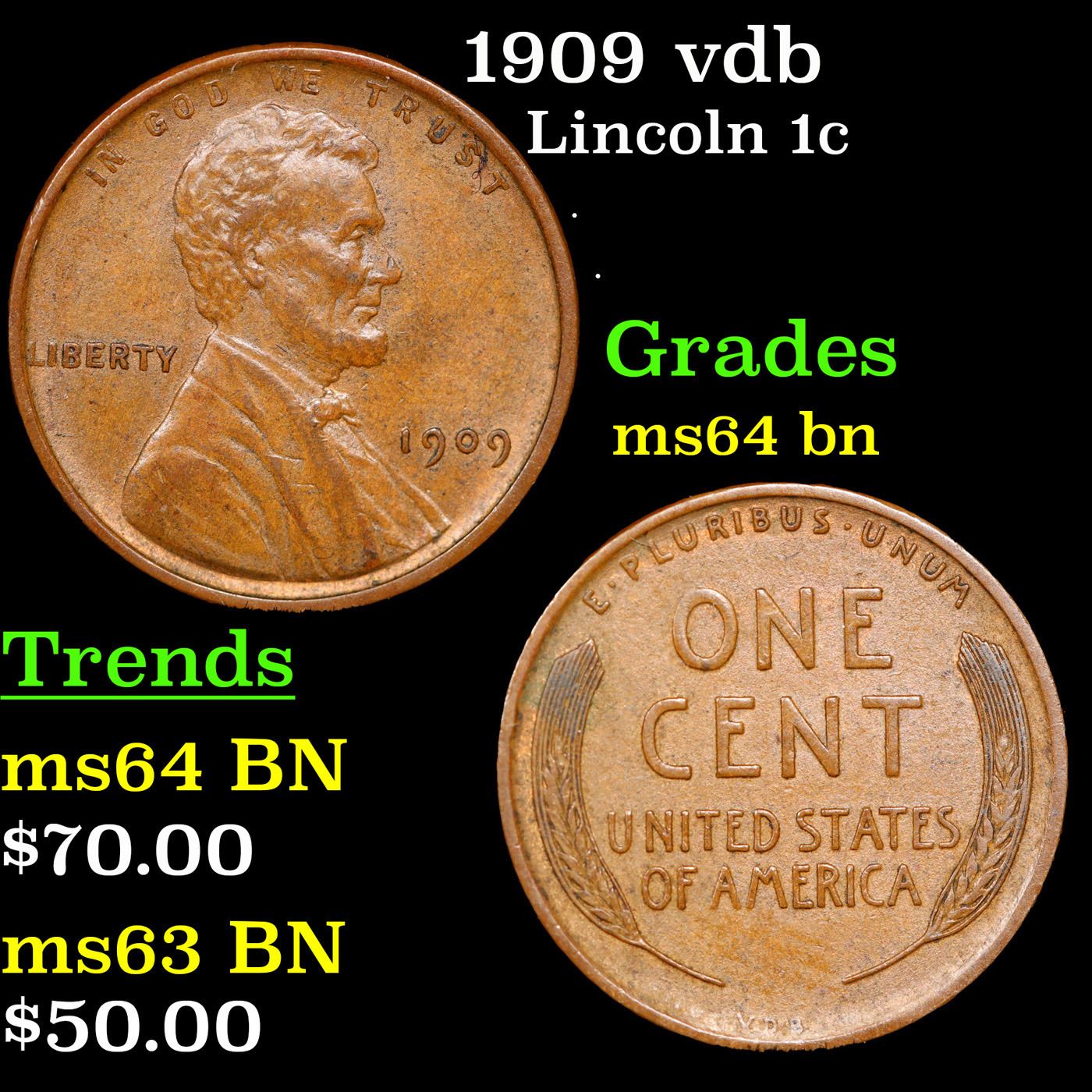 1909 vdb Lincoln Cent 1c Grades Choice Unc BN. Always sought after date. Always popular.