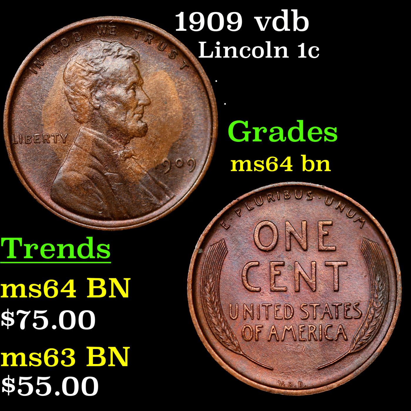 1909 vdb Lincoln Cent 1c Grades Choice Unc BN. Always sought after date. Always popular.