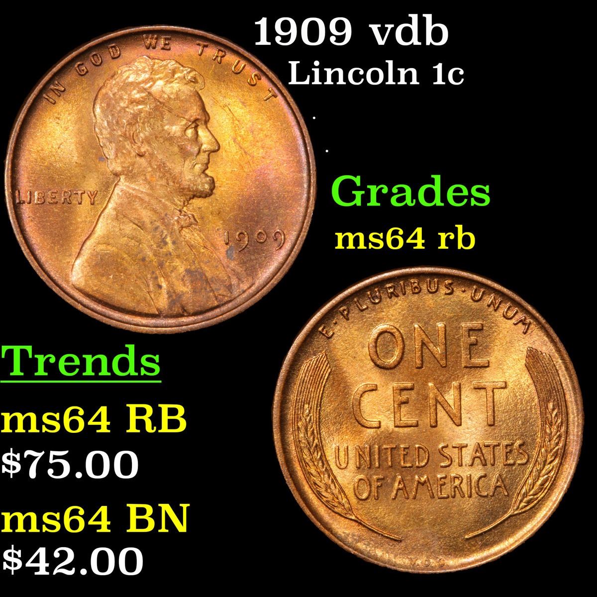 1909 vdb . . Lincoln Cent 1c Grades Choice Unc RB. Always sought after date. Always popular.