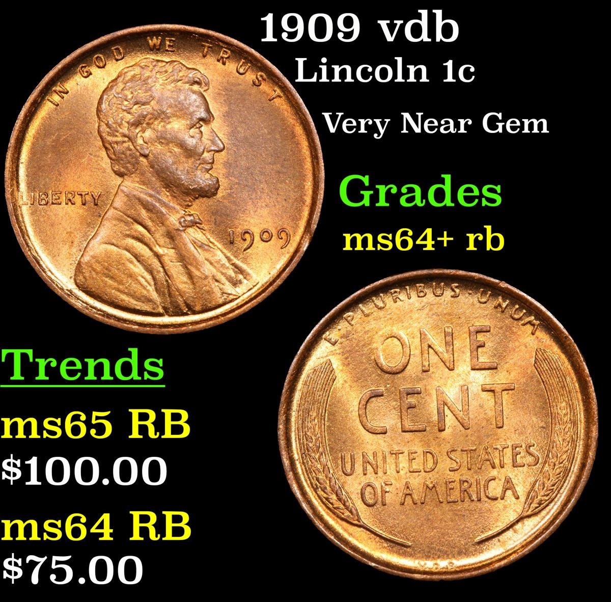 1909 vdb . Very Near Gem Lincoln Cent 1c Grades Choice+ Unc RB. Always sought after date. Always popular.