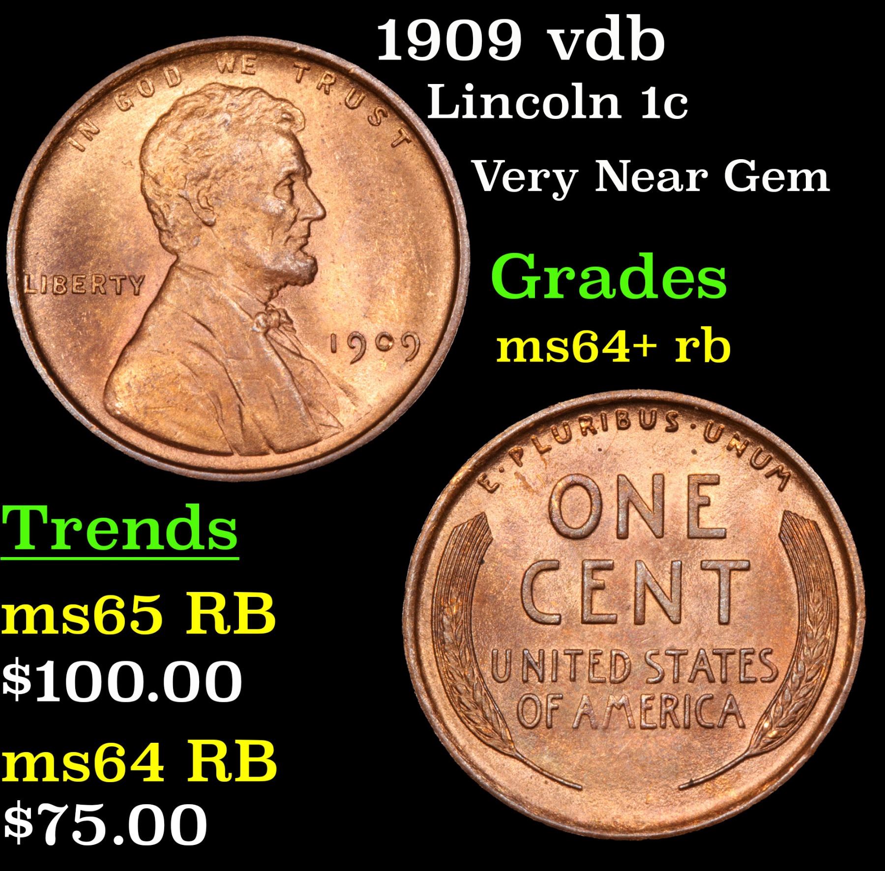 1909 vdb . Very Near Gem Lincoln Cent 1c Grades Choice+ Unc RB. Always sought after date. Always popular.