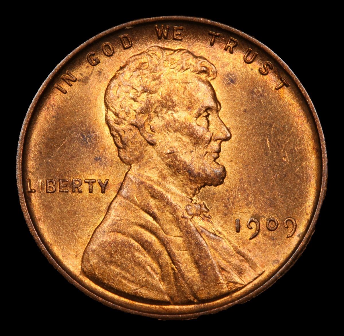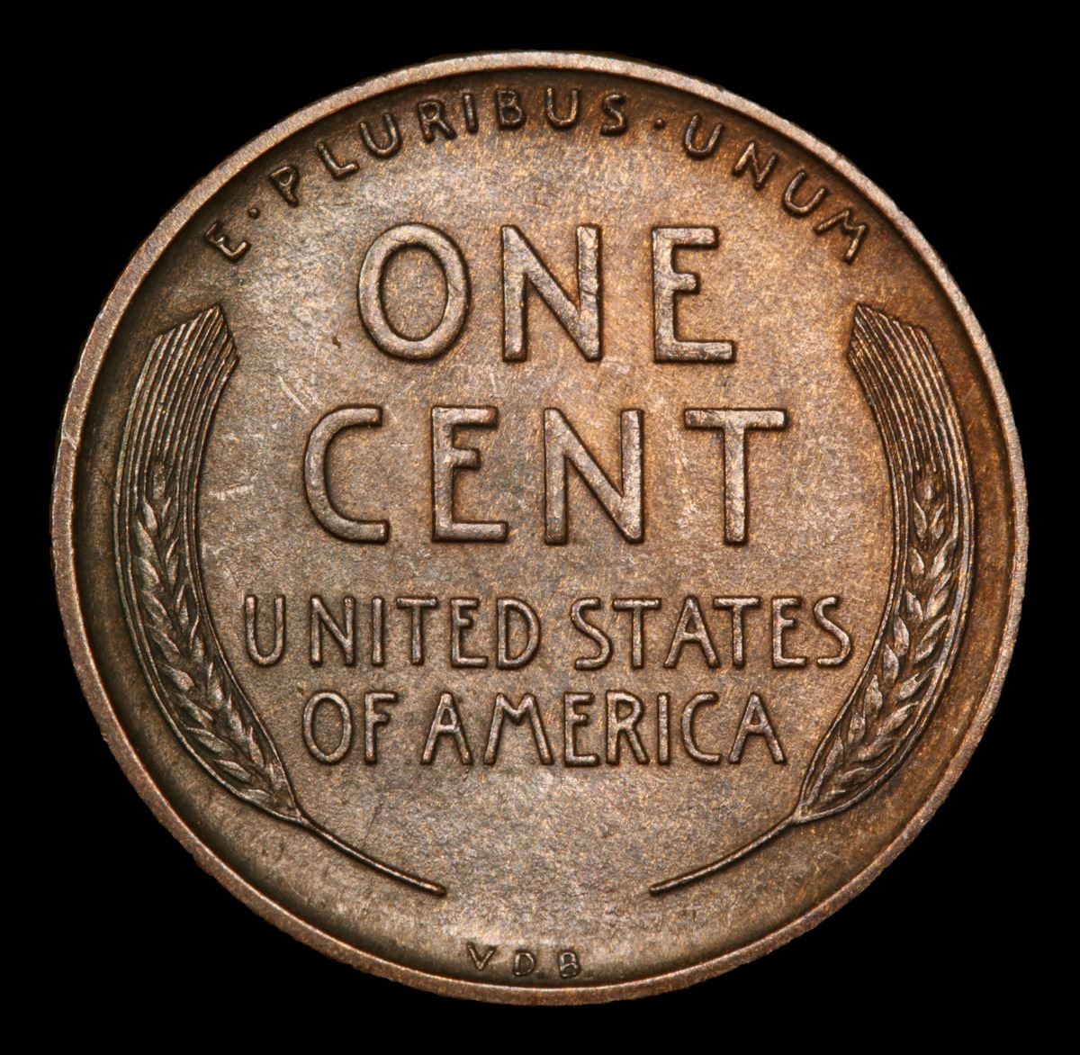 1909 vdb Lincoln Cent 1c Grades Choice+ Unc RB. Always sought after date. Always popular.