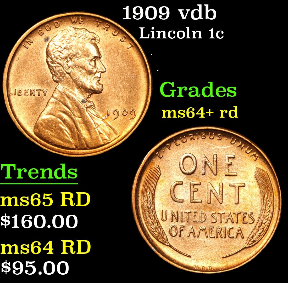 1909 vdb . . Lincoln Cent 1c Grades Choice+ Unc RD. Always sought after date. Always popular. A Corey's Pick