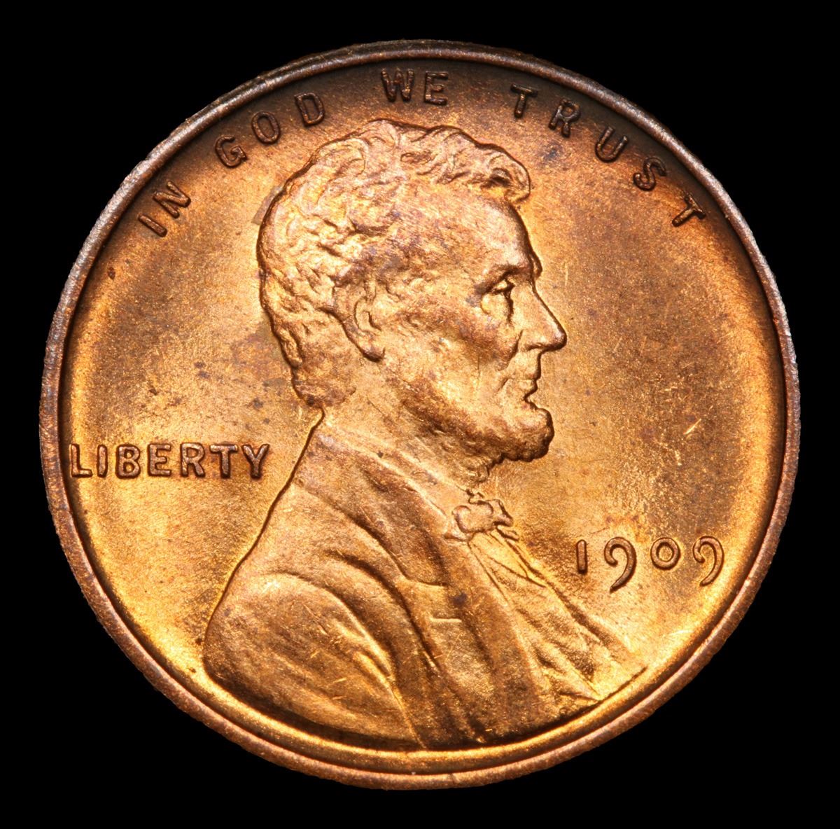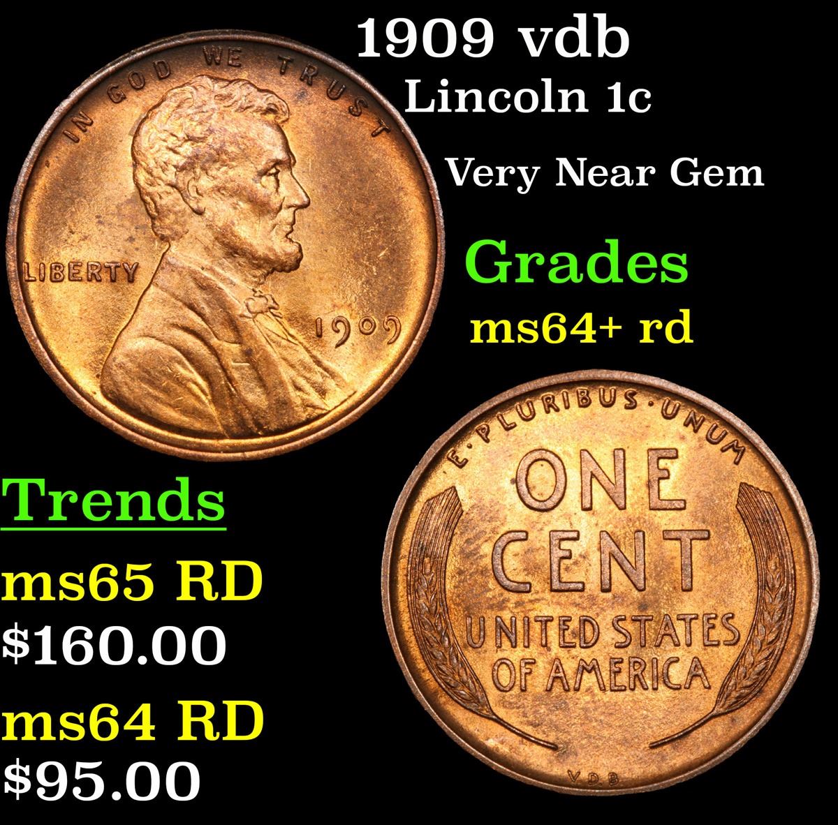 1909 vdb . Very Near Gem Lincoln Cent 1c Grades Choice+ Unc RD. Always sought after date. Always popular.