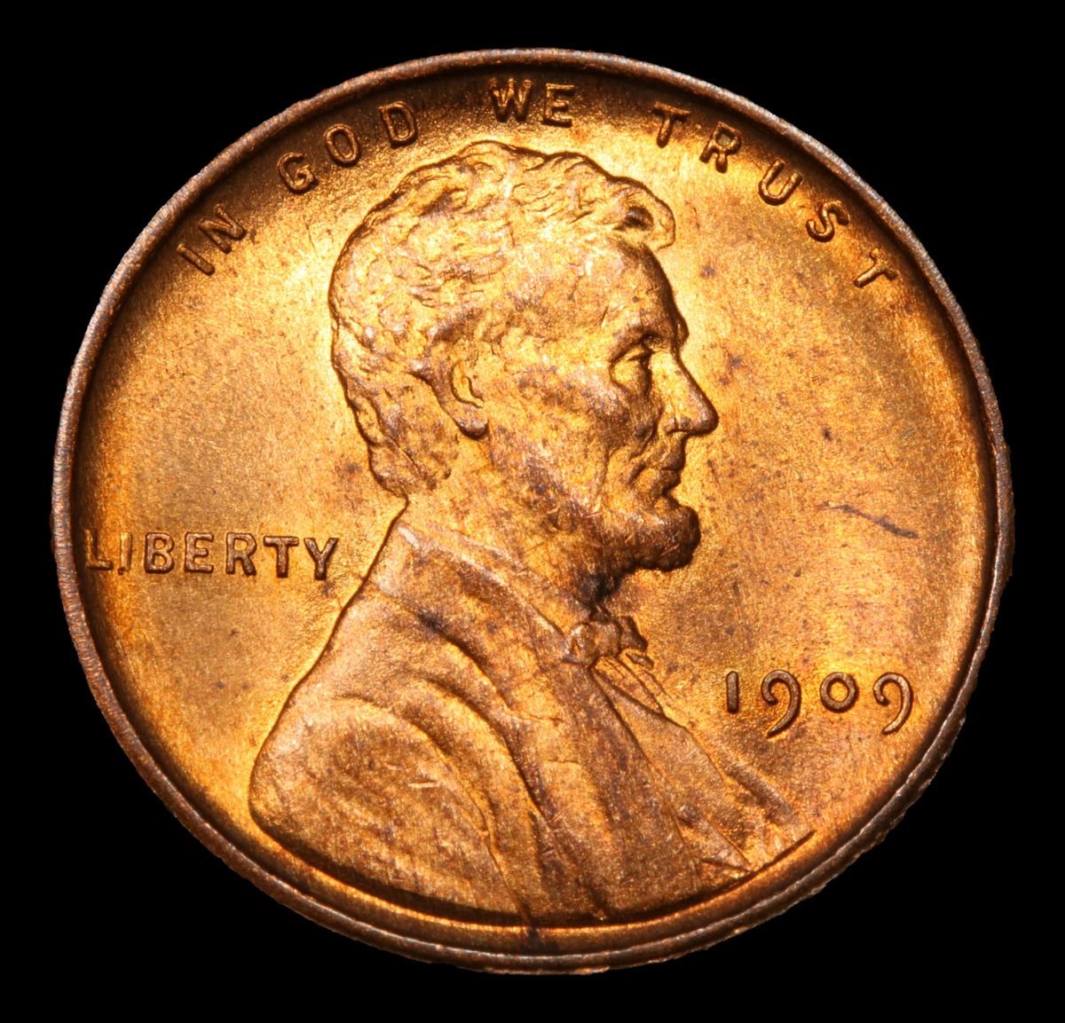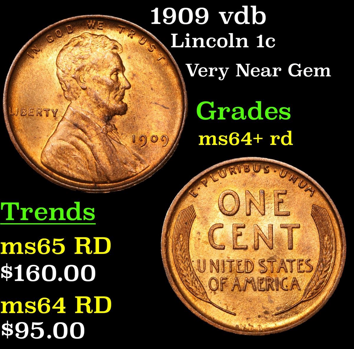 1909 vdb Lincoln Cent 1c Grades Choice+ Unc RD. Always sought after date. Always popular.