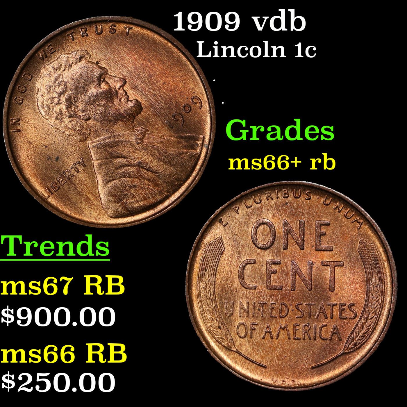 1909 vdb Lincoln Cent 1c Grades GEM++ RB. Always sought after date. Always popular.