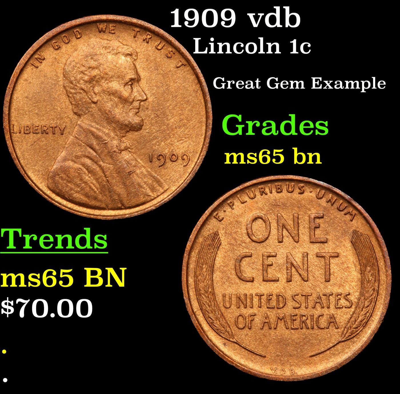1909 vdb Lincoln Cent 1c Grades GEM Unc BN. Always sought after date. Always popular.