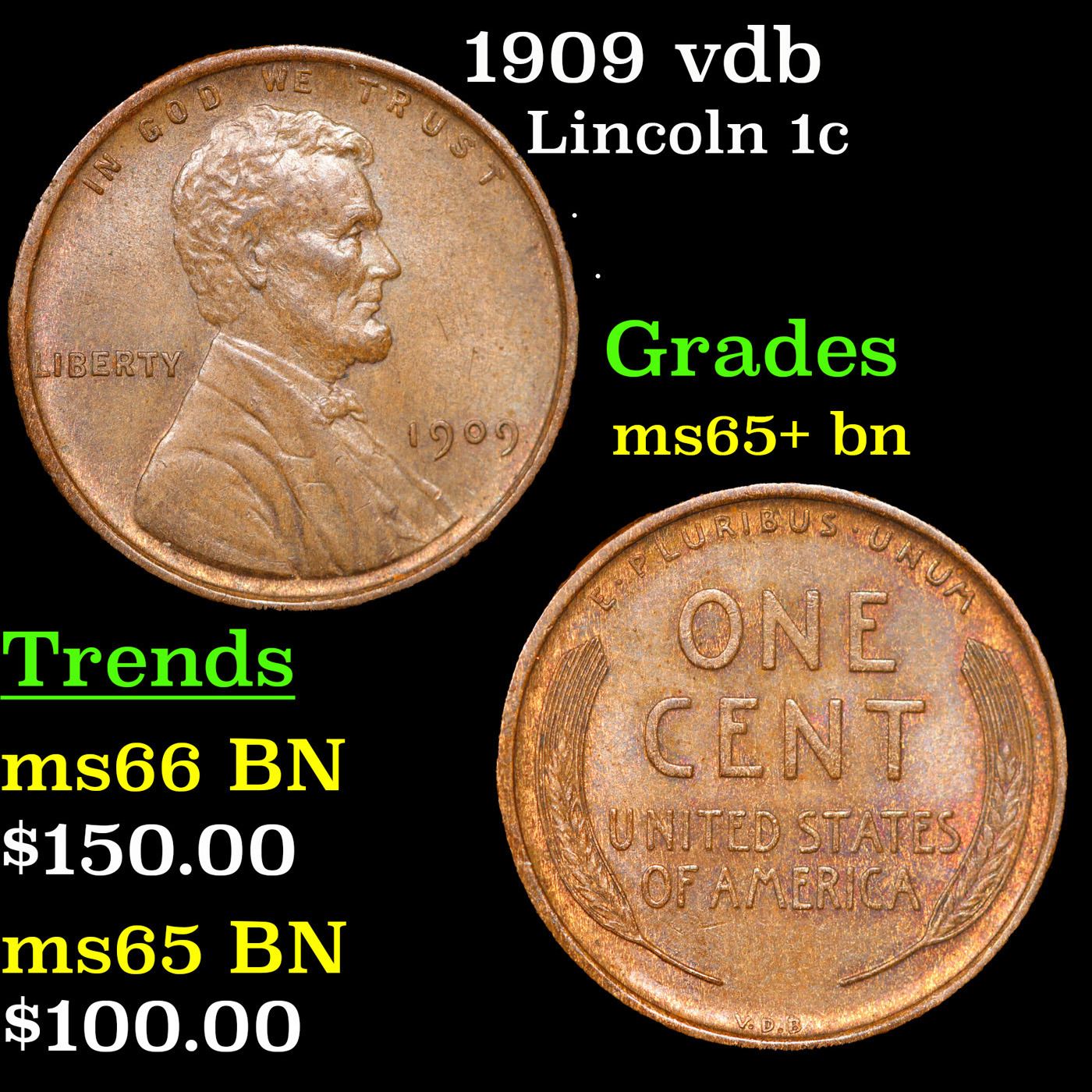 1909 vdb Lincoln Cent 1c Grades GEM+ Unc BN. Always sought after date. Always popular.
