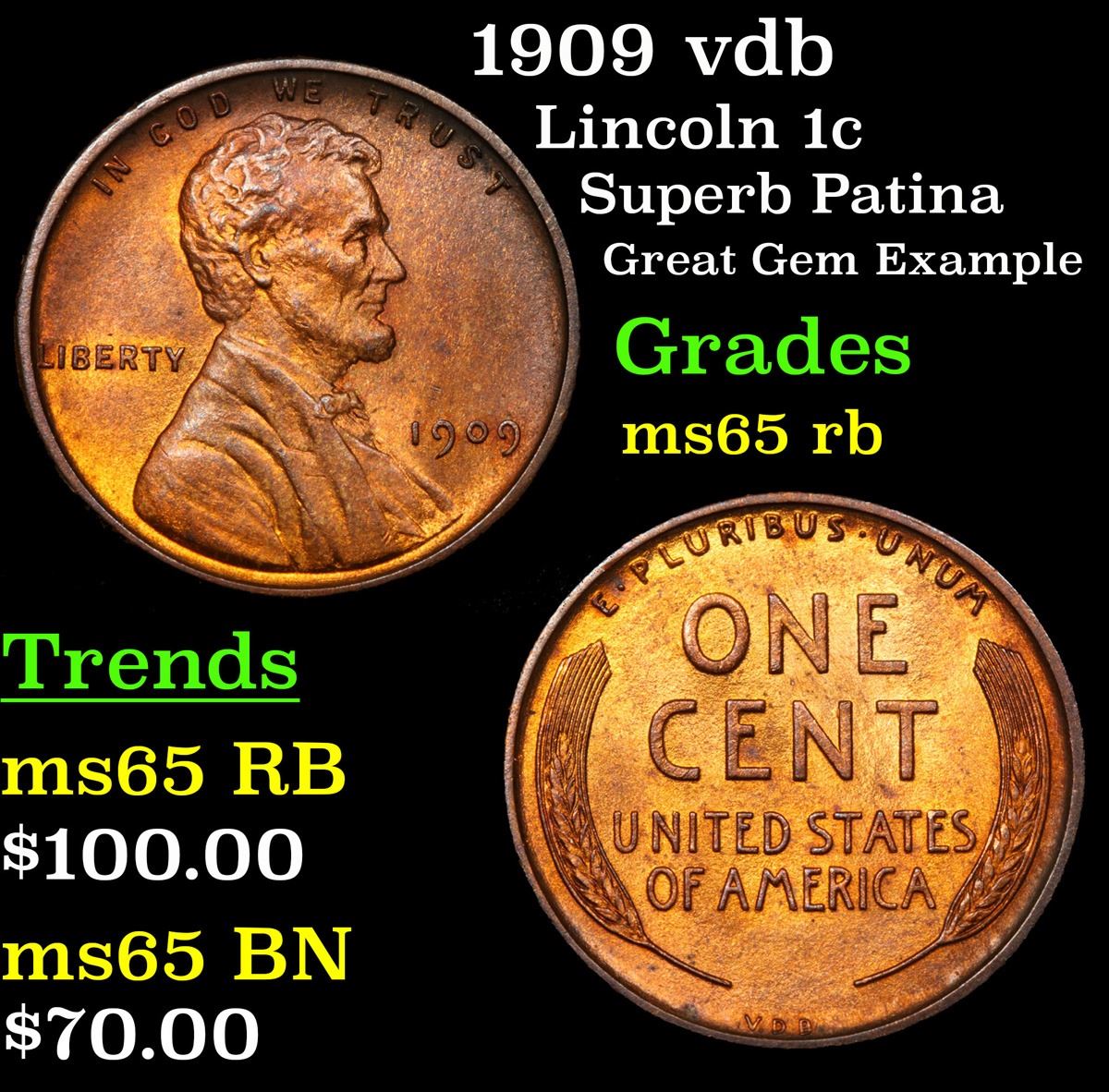 1909 vdb Lincoln Cent 1c Grades GEM Unc RB. Always sought after date. Always popular.