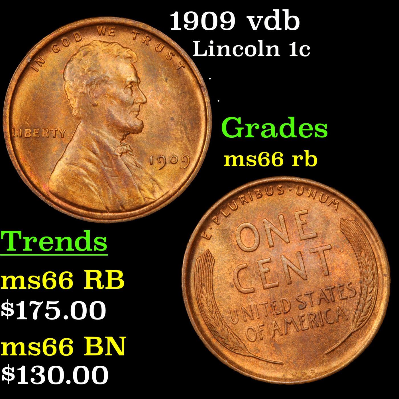 1909 vdb Lincoln Cent 1c Grades GEM+ Unc RB. Always sought after date. Always popular.