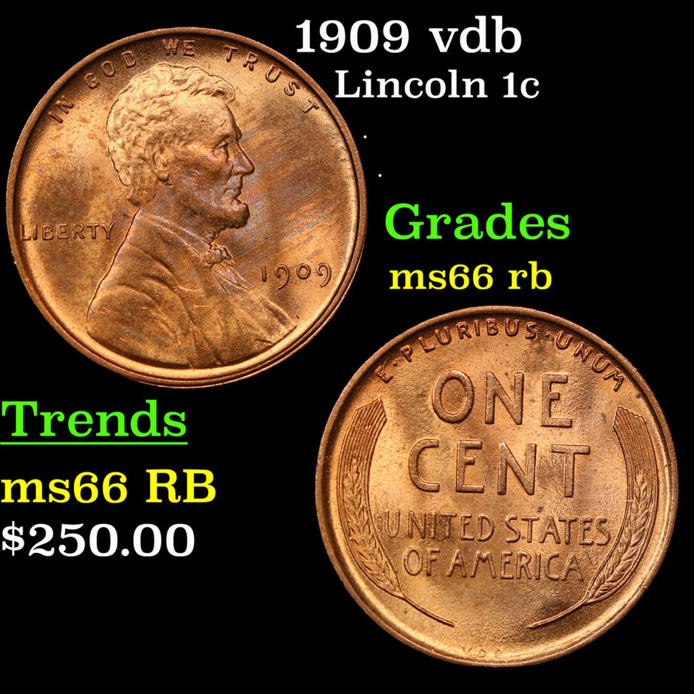 1909 vdb Lincoln Cent 1c Grades GEM+ Unc RB. Always sought after date. Always popular.
