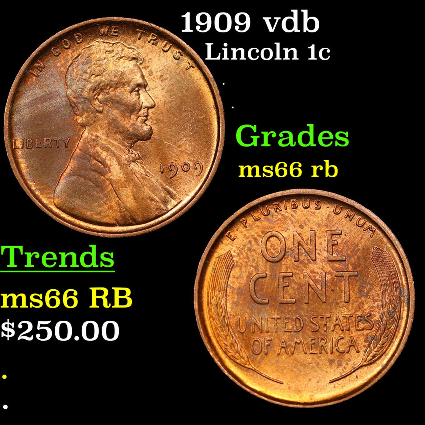 1909 vdb Lincoln Cent 1c Grades GEM+ Unc RB. Always sought after date. Always popular.
