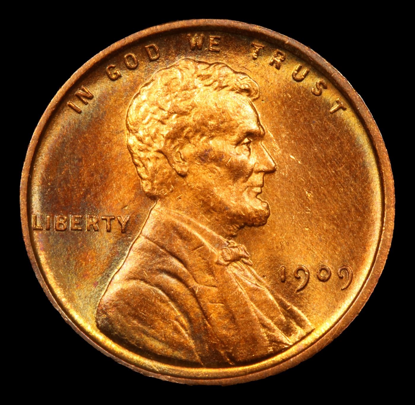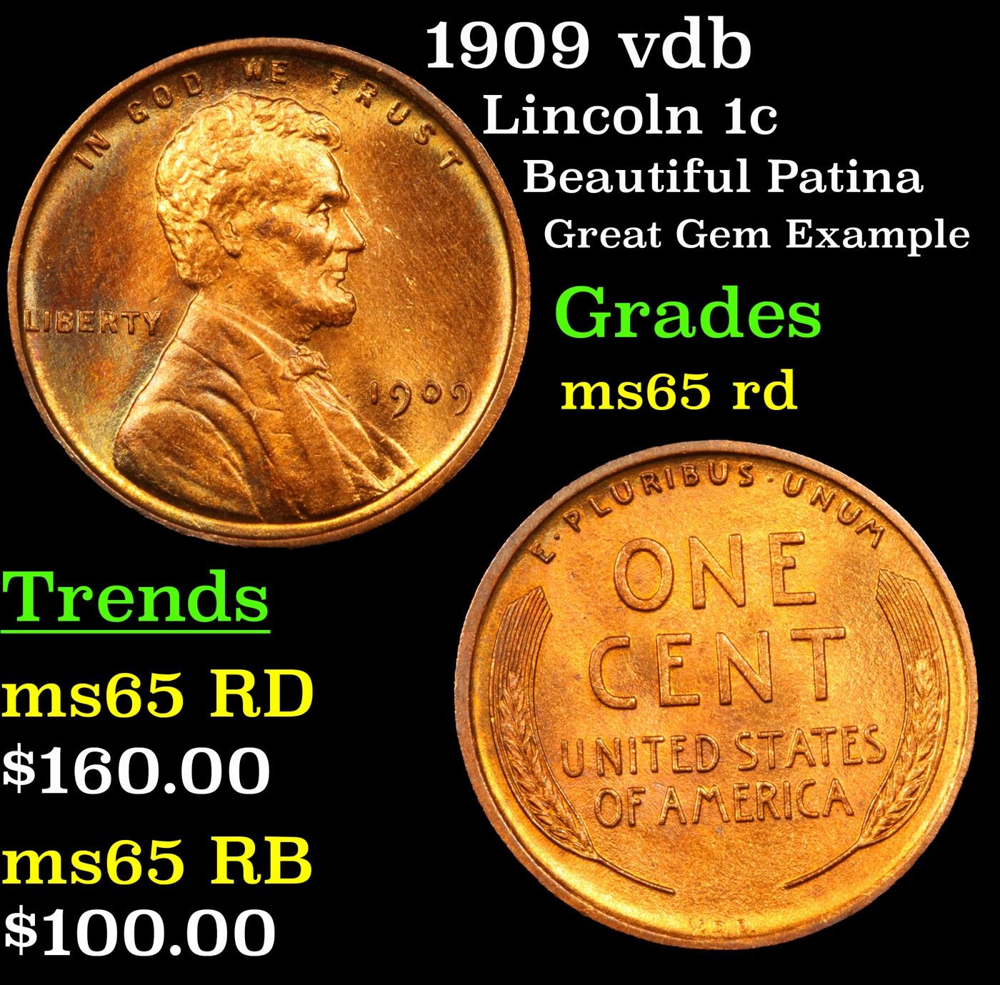 1909 vdb Lincoln Cent 1c Grades GEM Unc RD. Always sought after date. Always popular.