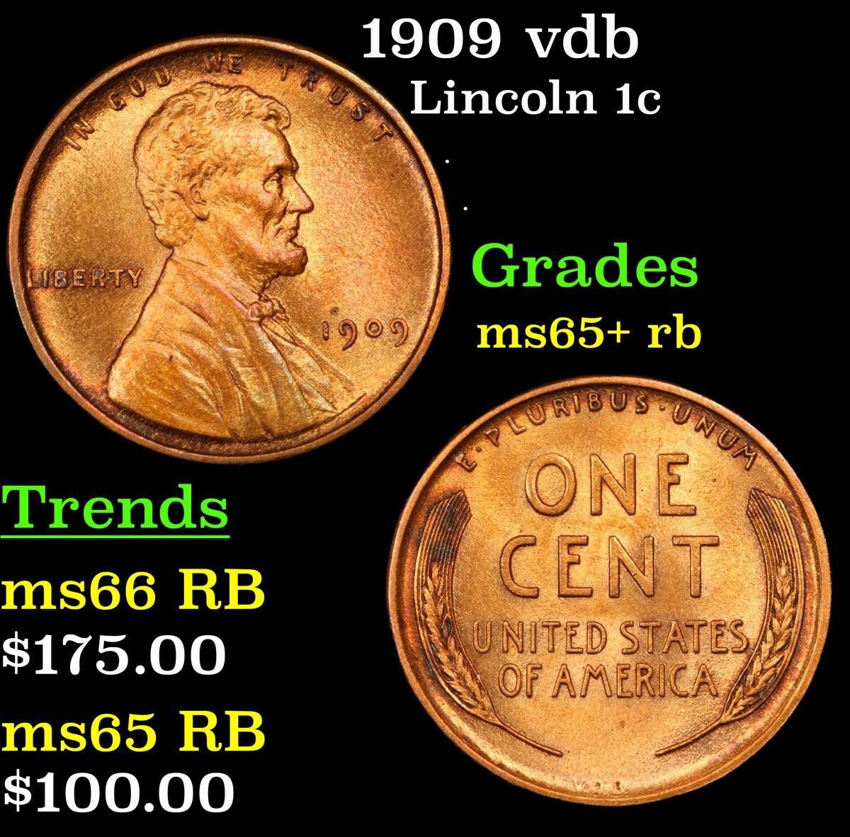 1909 vdb Lincoln Cent 1c Grades Gem+ Unc RB. Always sought after date. Always popular.