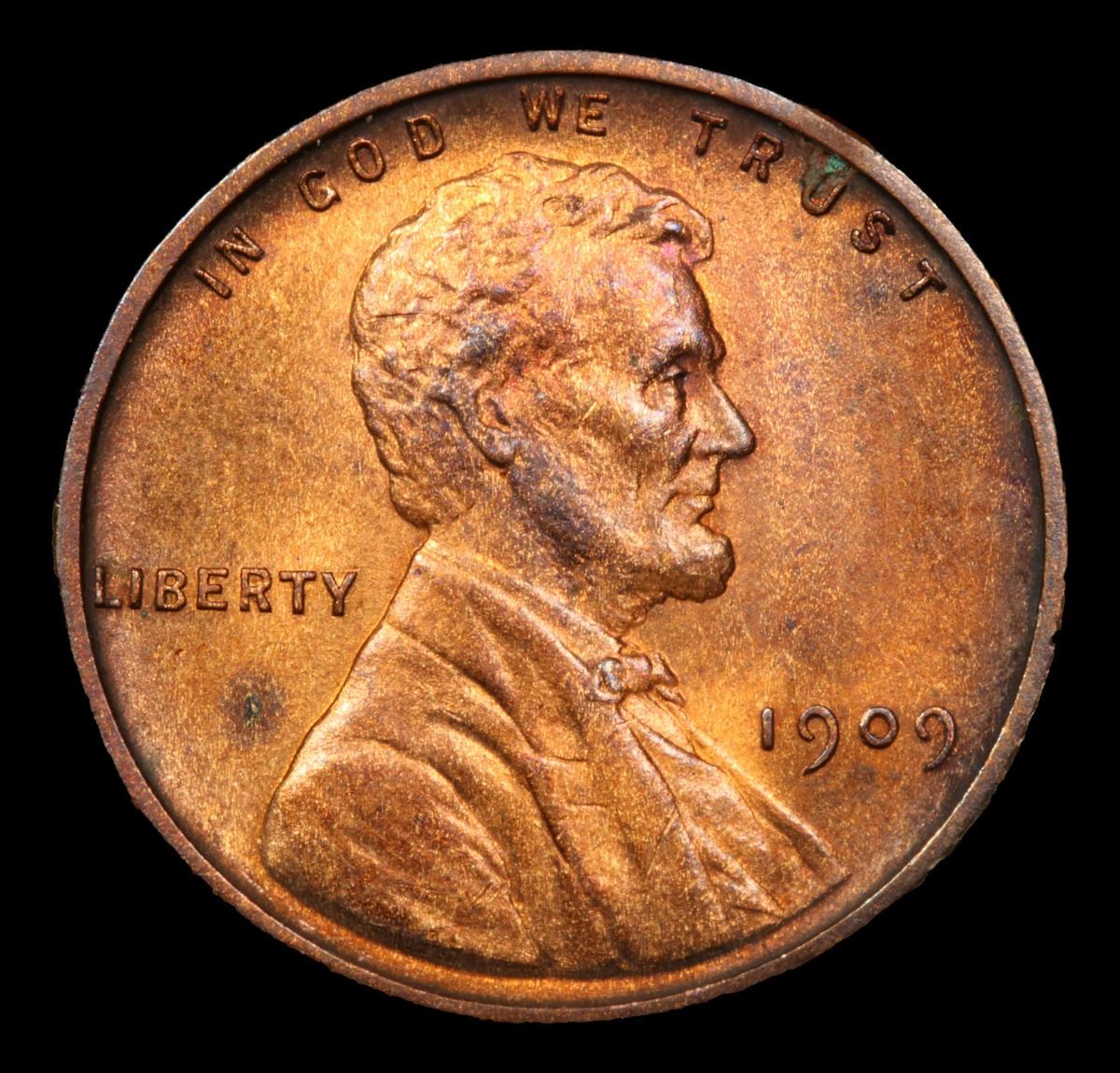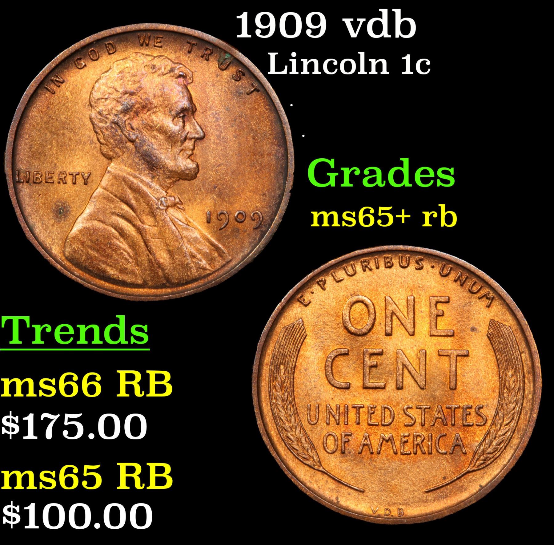 1909 vdb Lincoln Cent 1c Grades Gem+ Unc RB. Always sought after date. Always popular.