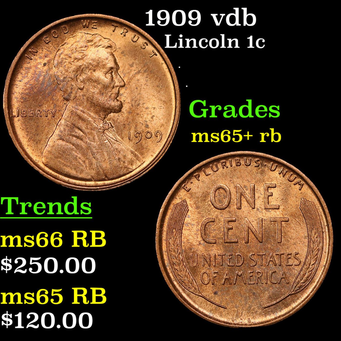 1909 vdb Lincoln Cent 1c Grades Gem+ Unc RB. Always sought after date. Always popular.