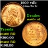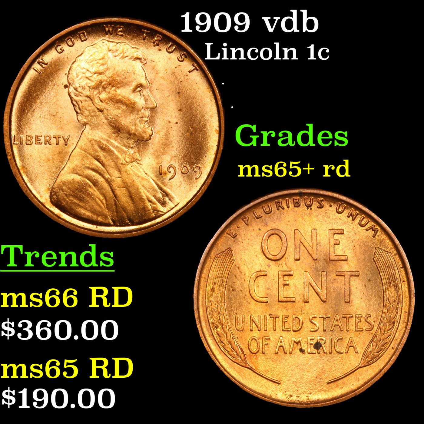 1909 vdb Lincoln Cent 1c Grades Gem+ Unc RD. Always sought after date. Always popular.