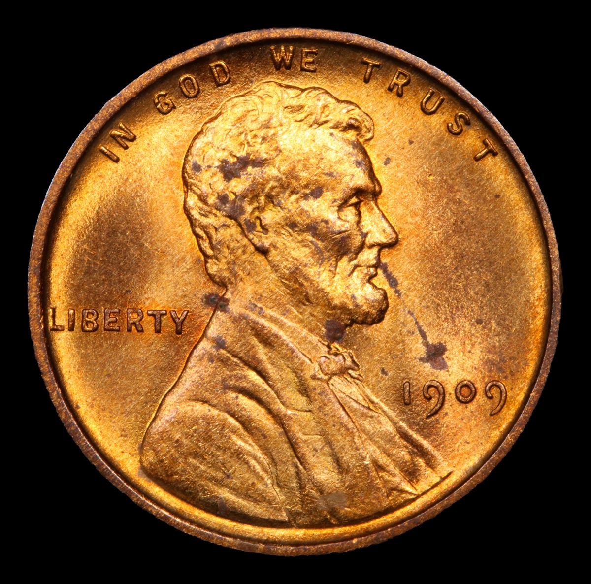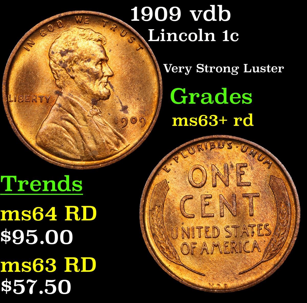 1909 vdb Very Strong Luster . Lincoln Cent 1c Grades Select+ Unc RD. Always sought after date. Always popular.
