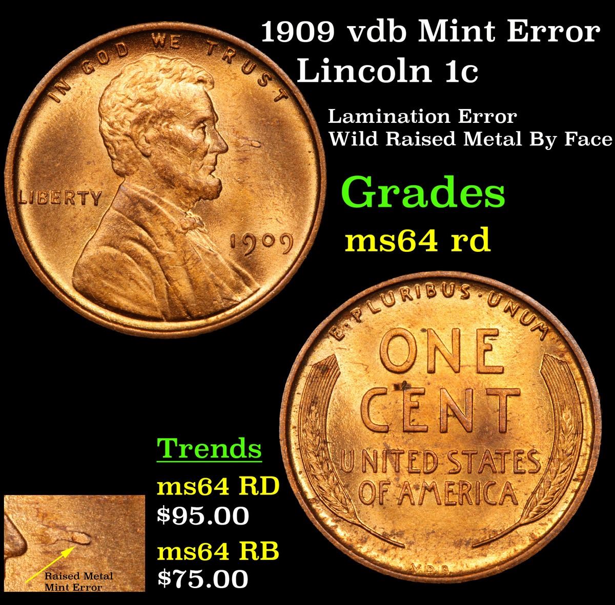 1909 vdb Mint Error Lincoln Cent 1c Grades Choice Unc RD.