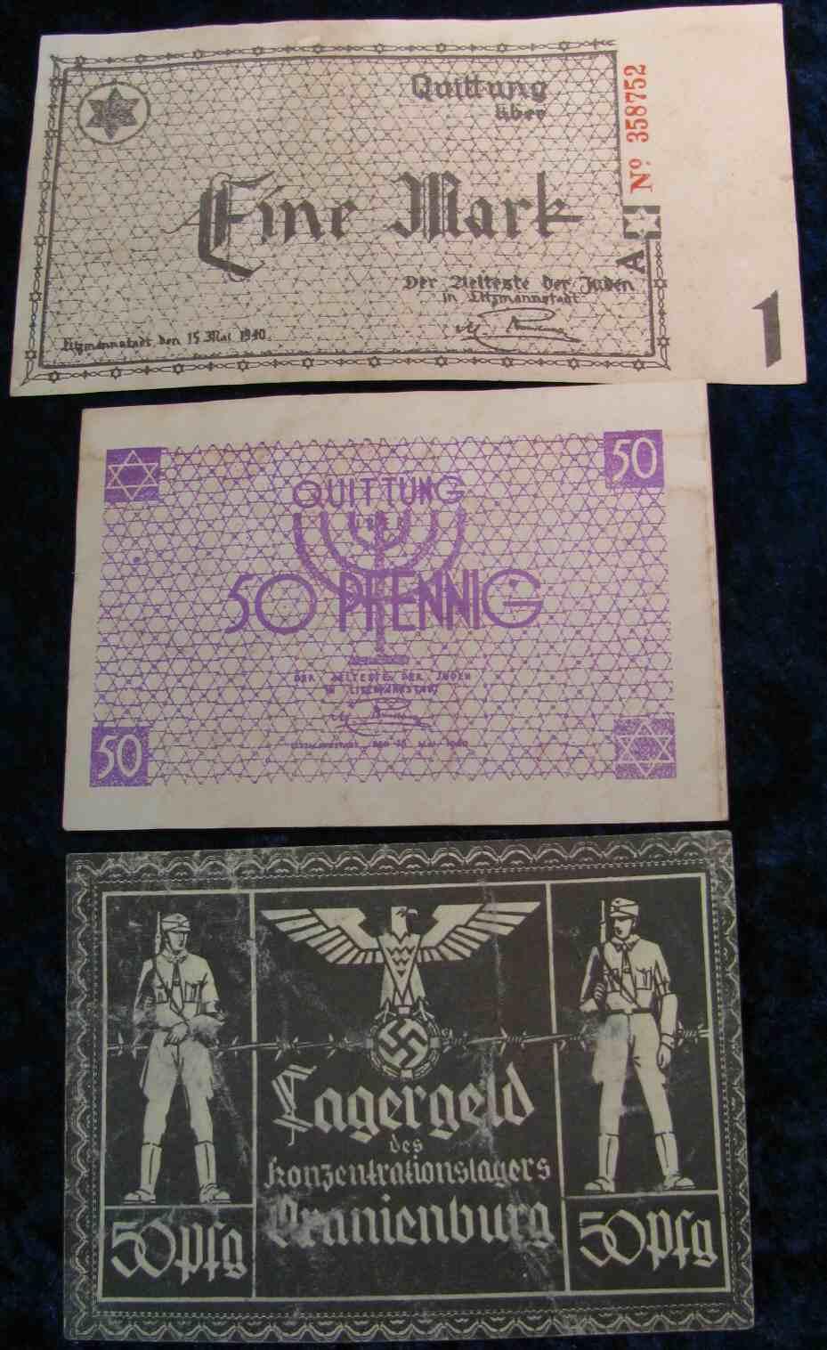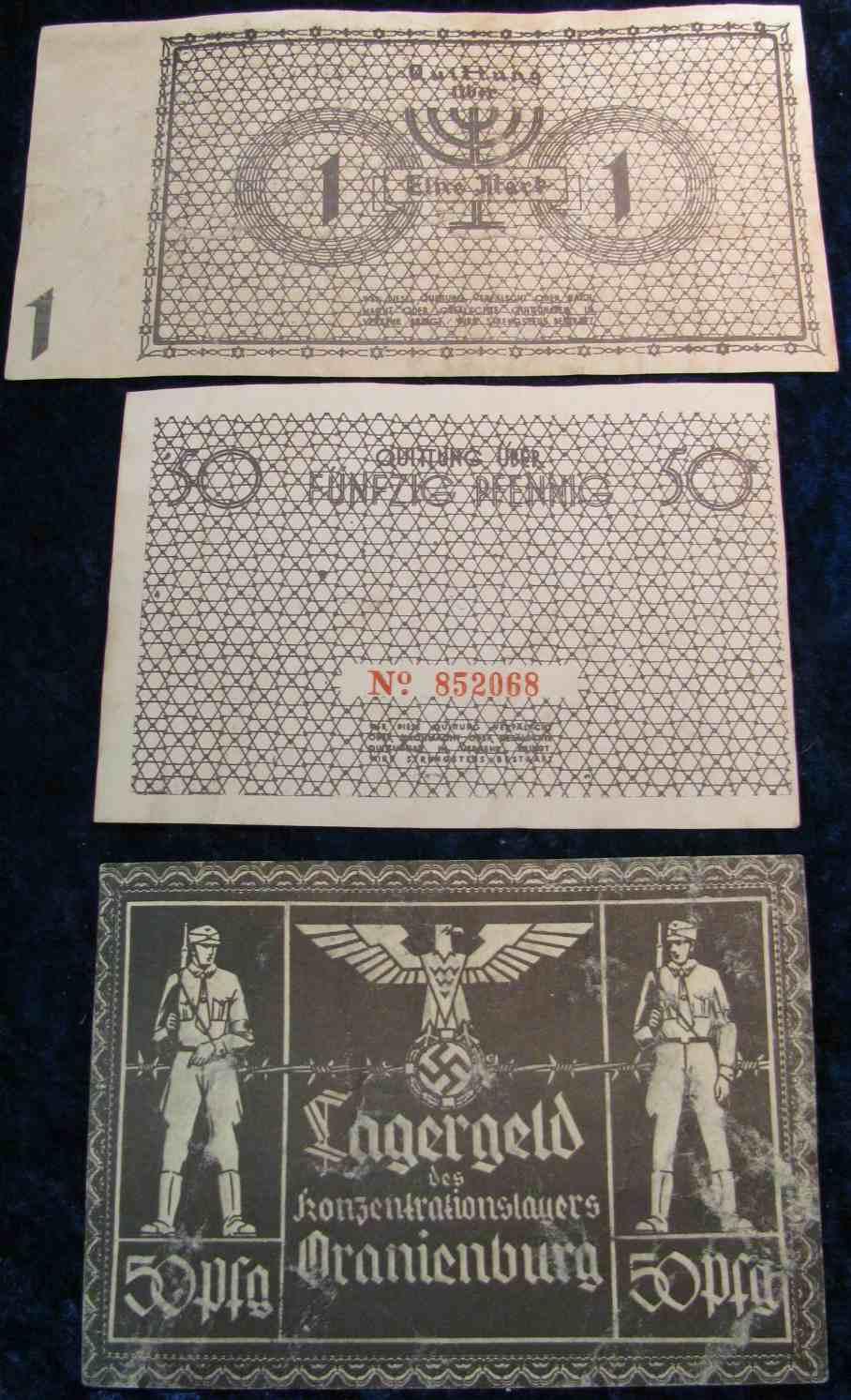 191. Group of Three Counterfeit Nazi Concentration Camp Notes.
