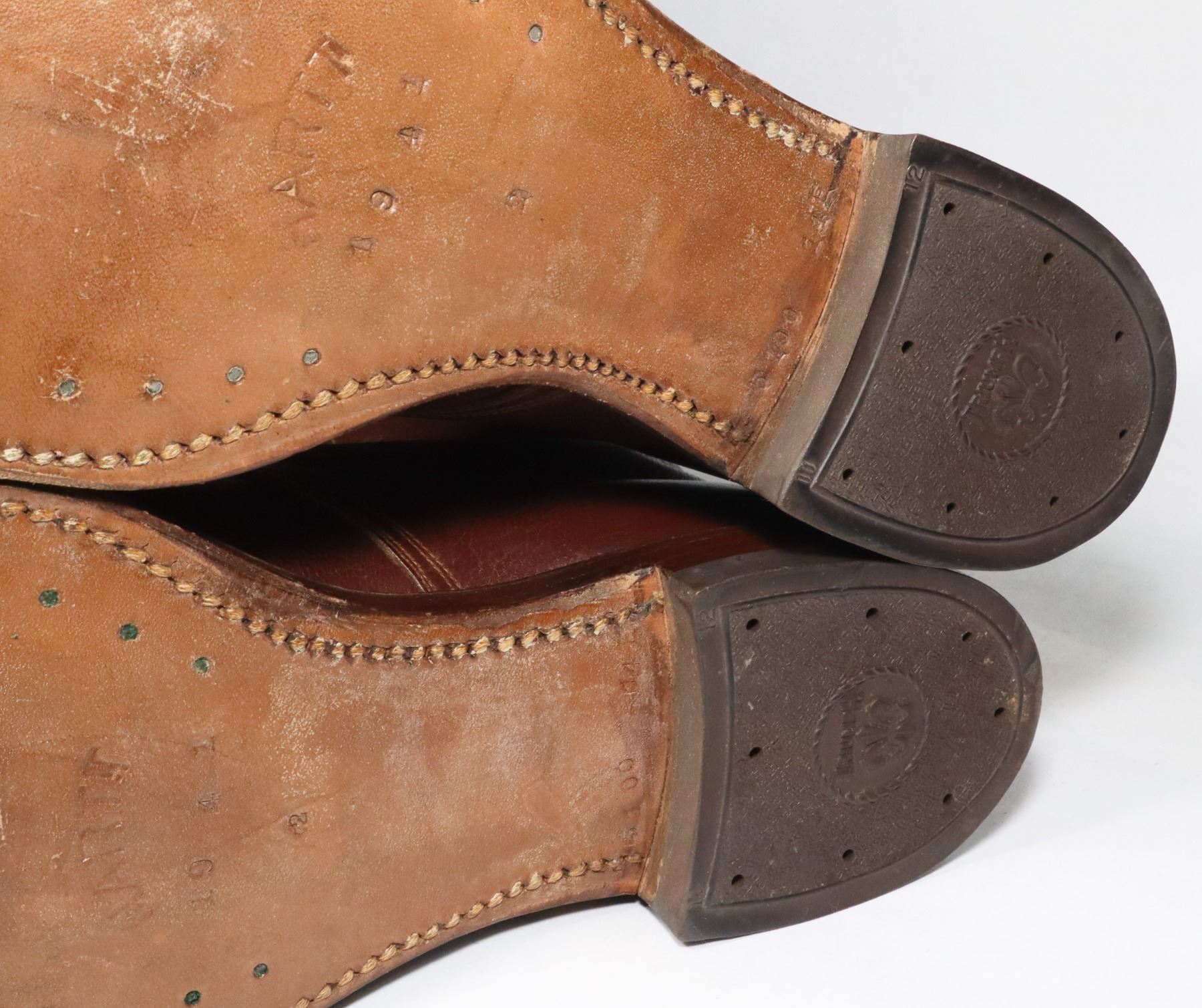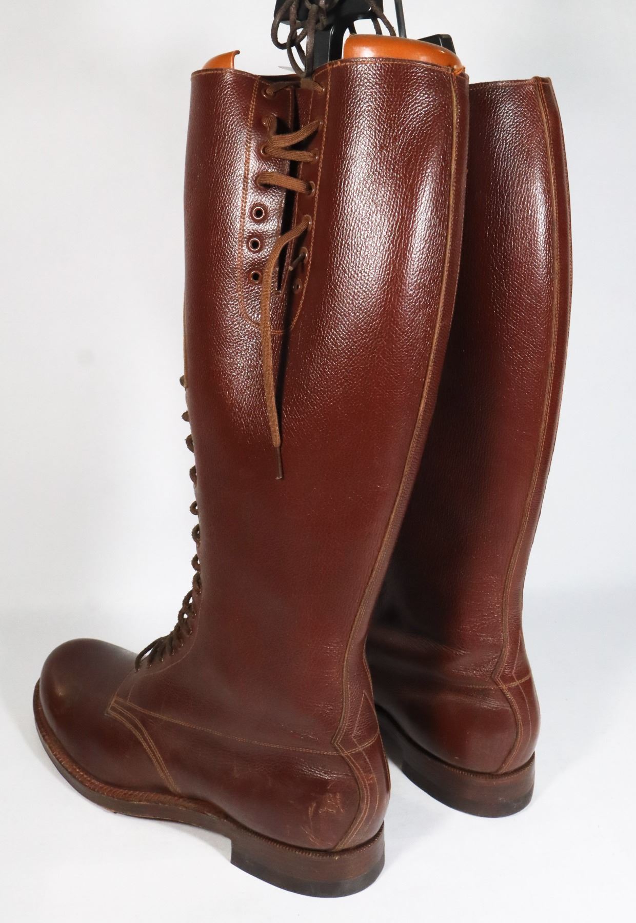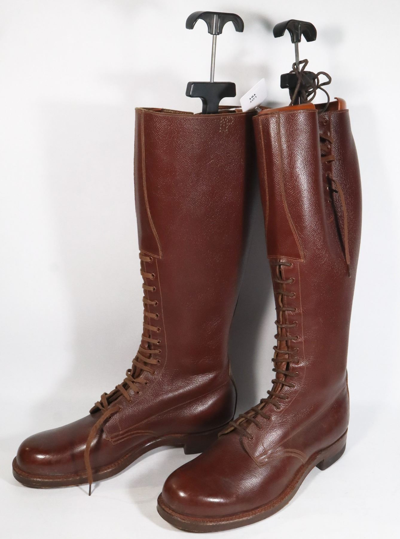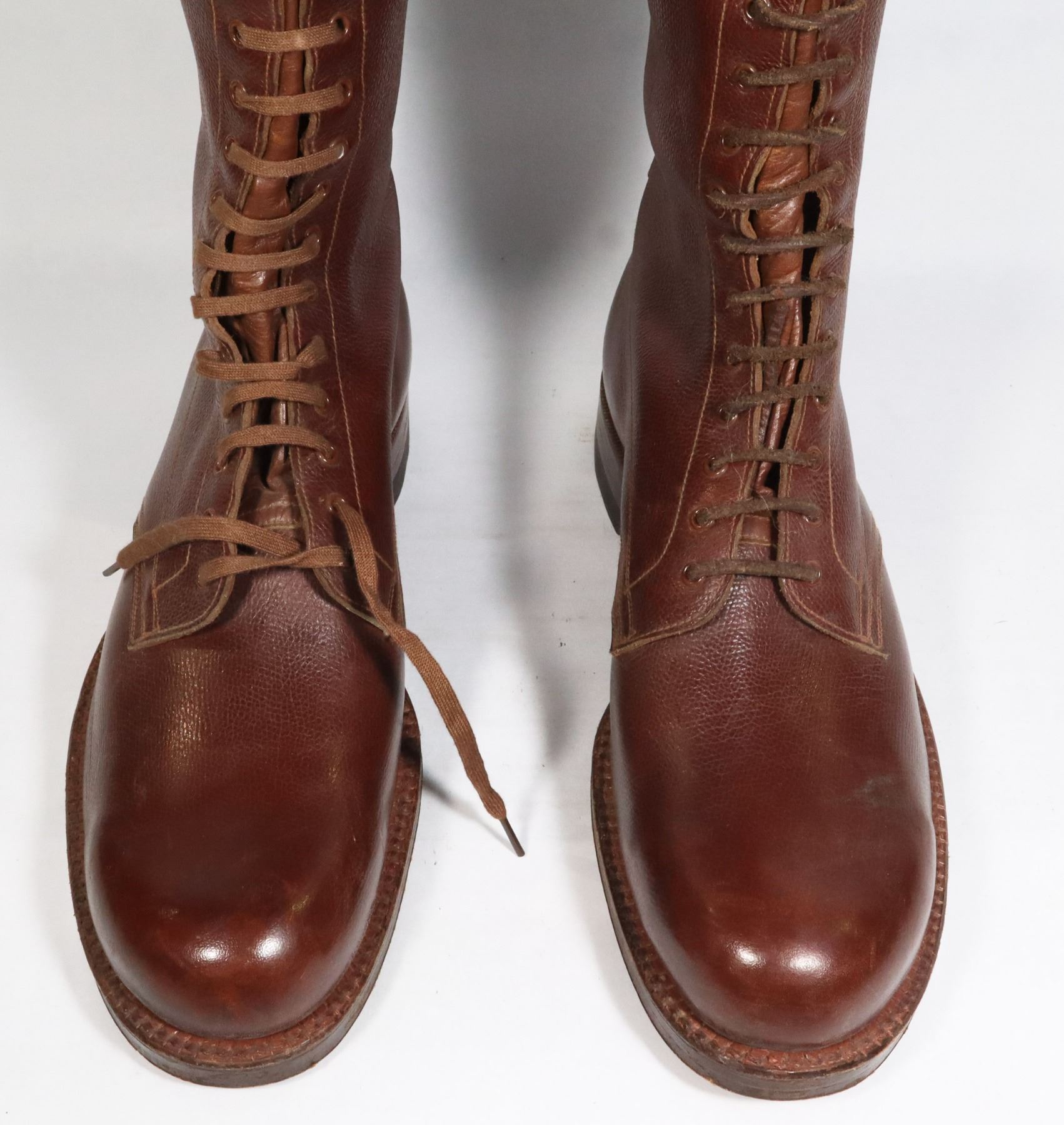 MP MARKED TRIUMPH BRAND HARTT 1941 5100 14E WORLD WAR TWO ERA 1941 ROYAL CANADIAN MOUNTED POLICE HIGH BROWN BOOTS W/ BOOT SHAPERS