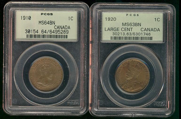 1910 1¢ MS64BN & 1920 Large MS63BN. Lot of 2 PCGS graded coins.