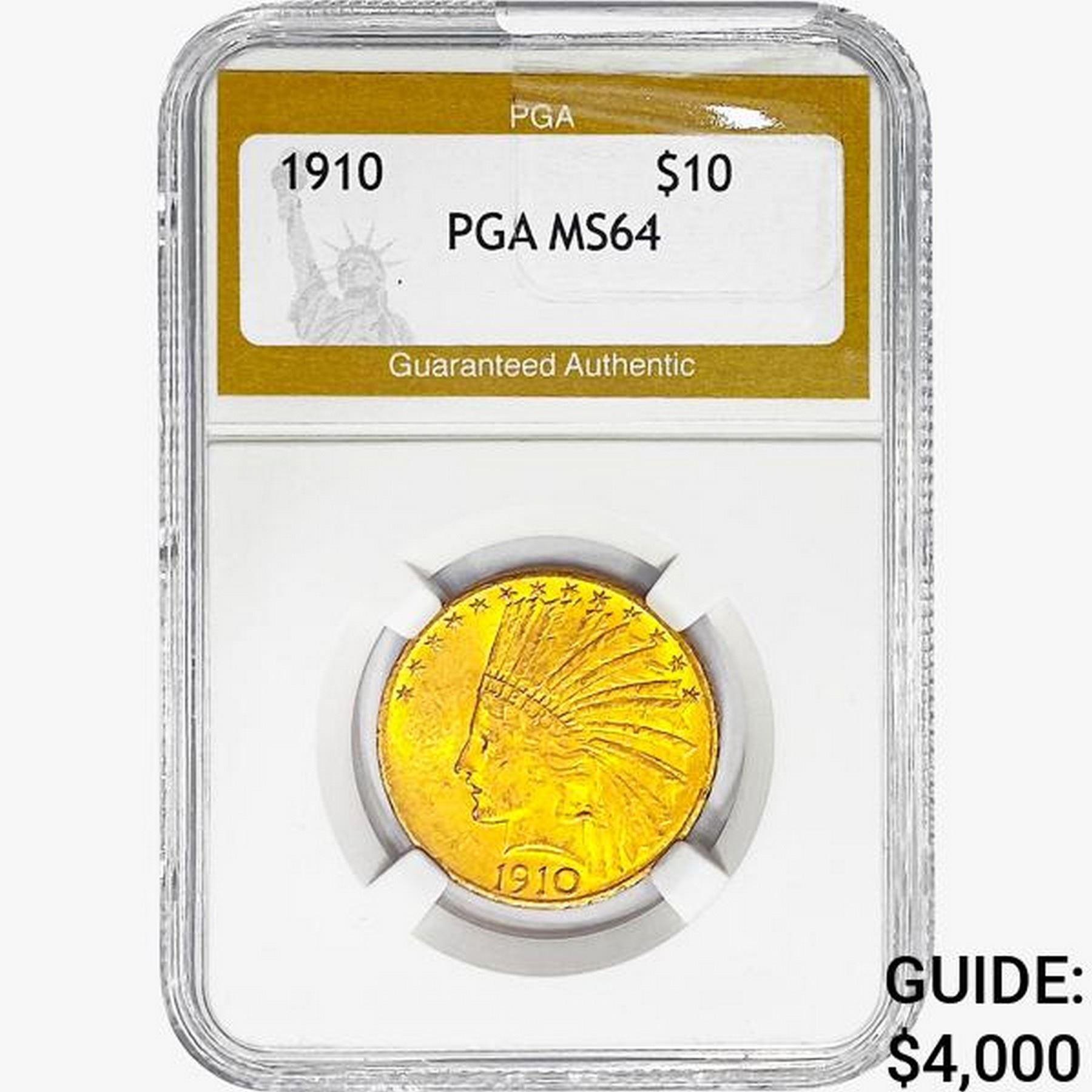 1910 $10 Gold Eagle PGA MS64