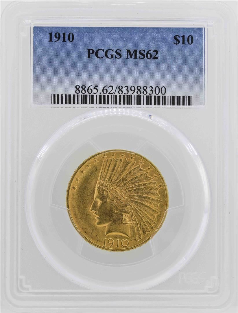 One 1910 $10 Indian Head Eagle Gold Coin PCGS MS62. PCGS Graded.
