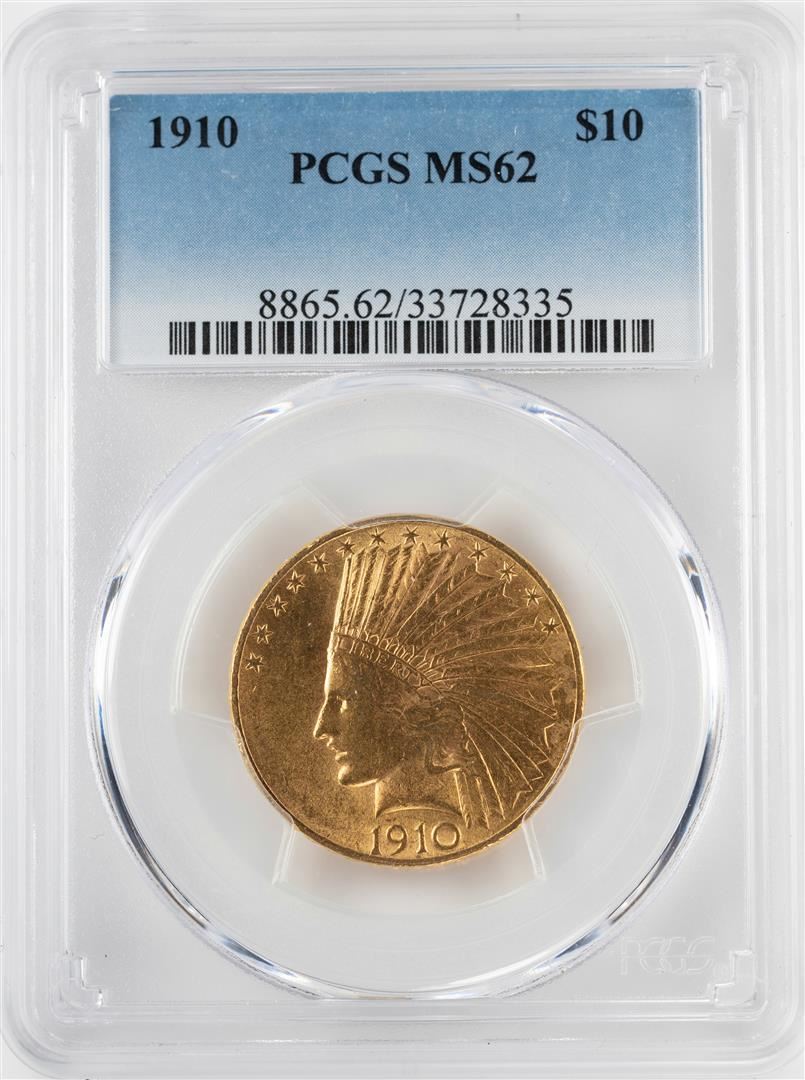 One 1910 $10 Indian Head Eagle Gold Coin PCGS MS62. PCGS Graded.