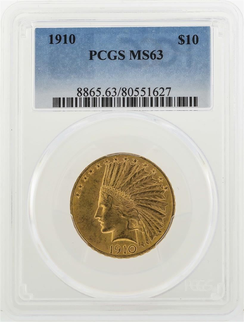 One 1910 $10 Indian Head Eagle Gold Coin PCGS MS63. PCGS Graded.