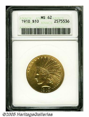 1910 $10 MS62 ANACS. Well struck and lustrous, wi