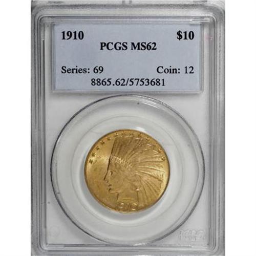 <B>1910 $10 MS62 PCGS.</B></I> PCGS Population (893/775). NGC Census: (1108/924). Mintage: 318,500. Numismedia Wsl. Price for NGC/PCGS coin in MS62: $1,100. (#8865)<BR><BR><B>Coin Engraver:</B> Augustus Saint-Gaudens<BR><BR><b>Shipping:</b> Coins & Currency (<a target="_blank" href="http://www.heritageauctions.com/common/shipping.php">view shipping information</a>\)
