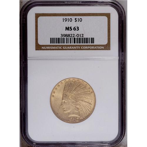 1910 $10 MS63 NGC. A high-end example, sharply struck