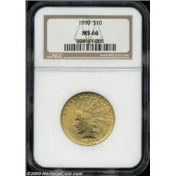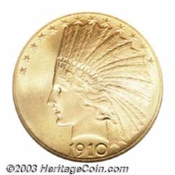 <table><tr><td><TABLE cellSpacing=0 cellPadding=0 width="100%" bgColor=#000000 border=0><TBODY> <TR><TD width="100%"><TABLE cellSpacing=1 cellPadding=3 width="100%" border=0><TBODY><TR><TD width="100%" bgColor=#79735c><FONT face=arial color=#ffffff size=3><B>Description</B> </FONT></TD></TR><TR><TD width="100%" bgColor=#ffffff><FONT face=arial size=2><B>1910 $10 MS66 NGC.</B></I> A nearly flawless coin that displays smooth, satiny luster over fine-grain, matte-like surfaces. Just a hint of reddish-gold patina is seen equally overlaying each side. Only a tiny, single milling mark is noted on the eagle's wingtip. This is the finest 1910 Eagle we have offered at auction in over 10 years. </FONT></TD></TR></TBODY></TABLE></TD></TR></TBODY></TABLE><BR><A name=PricesRealized></A><TABLE cellSpacing=0 cellPadding=0 width="100%" bgColor=#000000 border=0><TBODY><TR><TD width="100%"><TABLE cellSpacing=1 cellPadding=3 width="100%" border=0><TBODY><TR><TD width="100%" bgColor=#79735c><A name=PR><FONT face=arial color=#ffffff size=3><B>Previous Prices from Heritage Auctions</B> </FONT></A></TD></TR><TR><TD bgColor=#f6f6ed><TABLE cellSpacing=0 cellPadding=0 width="100%" border=1><TBODY><TR><TD align=middle width="33%"><B>Date</B></TD><TD align=middle width="33%"><B>Service</B></TD><TD align=middle width="33%"><B>Price</B></TD></TR><TR bgColor=whitesmoke><TD width="33%"><B>05/01/1998</B></TD><TD width="33%">PCGS</TD><TD width="33%">$46,750.00</TD></TR><TR bgColor=whitesmoke><TD width="33%"><B>05/01/1990</B></TD><TD width="33%">NGC</TD><TD width="33%">$27,500.00</TD></TR><TR bgColor=whitesmoke><TD width="33%"><B>07/01/1996</B></TD><TD width="33%">NGC</TD><TD width="33%">$9,680.00</TD></TR></TBODY></TABLE></TD></TR><TR><TD bgColor=#ffffff><FONT face=arial size=1 ?>PLEASE NOTE: All prices realized reflect the final hammer price PLUS the buyer's premium in auctions that charge a buyer's premium. Each item has a notation at the top of the listing indicating whether that lot included a buyer's premium. Example: A item that sells with a final hammer price of $100 and a 20% buyer's premium will display with a price realized of $120. All information listed is intended to be as accurate as possible, but errors are possible. Please use this guide carefully and inform us of any inaccuracies. </FONT></TD></TR></TBODY></TABLE></TD></TR></TBODY></TABLE><BR><TABLE cellSpacing=0 cellPadding=0 width="100%" bgColor=#000000 border=0><TBODY><TR><TD width="100%"><TABLE cellSpacing=1 cellPadding=3 width="100%" border=0><TBODY><TR><TD width="100%" bgColor=#79735c colSpan=6><FONT face=arial color=#ffffff size=3><B>Price Guide*</B> </FONT></TD></TR><TR bgColor=#f6f6ed><TD align=middle><B>Grade</B> </TD><TD align=middle><B>Coin World<BR>(Trends)</B> </TD><TD align=middle><B>Numismedia<BR>Retail</B> </TD><TD align=middle><B>Numismedia<BR>Wholesale</B> </TD><TD align=middle><B>Coin<BR>Universe</B> </TD><TD align=middle><B>Heritage<BR>Value Index</B> </TD></TR><TR bgColor=#ffffff><TD align=middle>65</TD><TD align=right>$5,250.00</TD><TD align=right>---</TD><TD align=right>$4,125.00</TD><TD align=right>$5,500.00</TD><TD align=right>$3,958.75</TD></TR><TR style="FONT-WEIGHT: bold" bgColor=#cccfdd><TD align=middle>66</TD><TD align=right>$25,000.00</TD><TD align=right>---</TD><TD align=right>$9,850.00</TD><TD align=right>$15,600.00</TD><TD align=right>$13,208.33</TD></TR><TR bgColor=#ffffff><TD align=middle>67</TD><TD align=right>---</TD><TD align=right>---</TD><TD align=right>$29,500.00</TD><TD align=right>---</TD><TD align=right>$17,975.00</TD></TR><TR bgColor=#ffffff><TD colSpan=6><FONT size=1>*All information listed is intended to be as accurate as possible, but errors are possible. No item may be returned or refused based on this information which is provided as a service to our customers. You should contact each pricing source directly to determine the accuracy of this information. </FONT></TD></TR></TBODY></TABLE></TD></TR></TBODY></TABLE><BR><TABLE cellSpacing=0 cellPadding=0 width="100%" bgColor=#000000 border=0><TBODY><TR><TD width="100%"><TABLE cellSpacing=1 cellPadding=3 width="100%" border=0><TBODY><TR><TD width="100%" bgColor=#79735c><FONT face=arial color=#ffffff size=3><B>Population Guide</B> </FONT></TD></TR><TR bgColor=#ffffff><TD align=middle><!-- Begin Output of Population Grid--><TABLE cellSpacing=0 cellPadding=0 width="100%" border=0><TBODY><TR><TD vAlign=center><TABLE cellSpacing=0 width="100%" border=1 cellsadding="3"><TBODY><TR><TD vAlign=center><TABLE cellSpacing=0 cellPadding=3 width="100%" border=1><TBODY><TR><TD vAlign=center align=middle bgColor=#f0f1e8 colSpan=2 <CENTER><FONT face=Arial size=2><B>PCGS Pop </B></FONT><CENTER></CENTER></TD><TD vAlign=center align=middle bgColor=#f0f1e8 colSpan=2><CENTER><FONT face=Arial size=2><B>NGC Pop</B></CENTER></FONT></TD></TR><TR><TD vAlign=center><FONT face=Arial size=2>(66)</FONT> </TD><TD vAlign=center align=right><FONT face=Arial size=2>10</FONT> </TD><TD vAlign=center><FONT face=Arial size=2>(66)</FONT> </TD><TD vAlign=center align=right><FONT face=Arial size=2>23</FONT> </TD></TR><TR><TD vAlign=center><FONT face=Arial size=2>(>66)</FONT> </TD><TD vAlign=center align=right><FONT face=Arial size=2>2</FONT> </TD><TD vAlign=center><FONT face=Arial size=2>(>66)</FONT> </TD><TD vAlign=center align=right><FONT face=Arial size=2>5</FONT> </TD></TR></TBODY></TABLE></TD></TR></TBODY></TABLE></TD></TR></TBODY></TABLE><!-- End Output of Population Grid--></TD></TR></TBODY></TABLE></TD></TR></TBODY></TABLE><BR><TABLE cellSpacing=0 cellPadding=0 width="100%" bgColor=#000000 border=0><TBODY><TR> Important notice: Heritage usually auctions material at the rate of 200-250 lots per hour. On some occasions eBay Live bid software or the Internet may not be able to keep up with the pace of the auction. We recommend placing a realistic absentee bid now as insurance to avoid disappointment. Occasionally the auctioneer may eliminate or reject an eBay Live bid, and the auctioneer may al