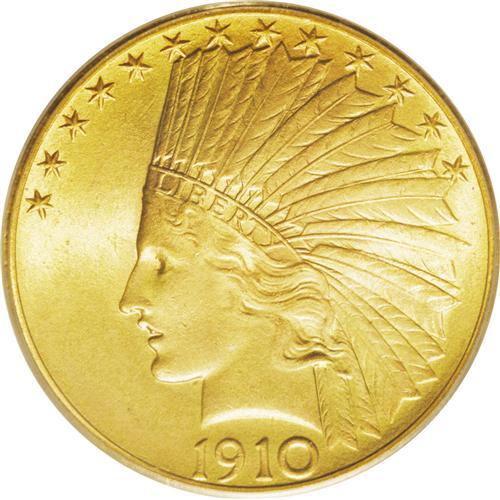 <B>1910 $10 MS66 PCGS.</B></I> Despite a rather low mintage of 318,500 coins, this date is considered common in nearly every grade. Garrett and Guth discuss this issue: "The 1910 issue is one of the more available dates in all grades, including Gem Mint State and higher. As with other Philadelphia Mint coins, the luster and strike are all that a collector could hope to find. Although the mintage is small when compared with a few other common dates, enough were saved to satisfy collector demand." Actually, coins such as this that exceed the Gem MS65 grade level are not so plentiful, as the PCGS data indicates. This piece has frosty honey-gold color with a sharp struck and brilliant luster. Population: 14 in 66, 2 finer (10/06).<BR><BR><b>Shipping:</b> Coin/Currency (<a target="_blank" href="http://www.heritageauctions.com/common/shipping.php">view shipping information</a>)
