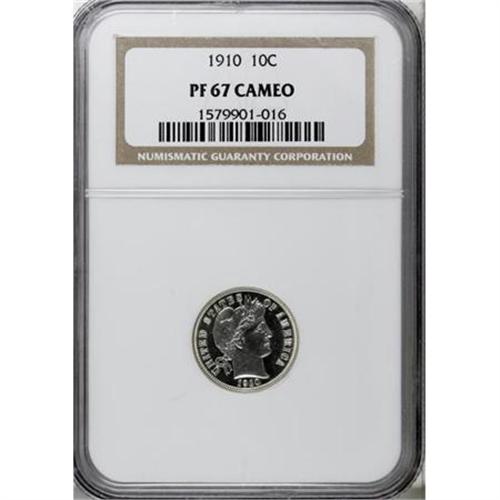 <B>1910 10C PR67 Cameo NGC.</B></I> This is an amazing Superb Cameo, whose deeply mirrored fields accentuate frosted devices. Untoned surfaces display boldly struck design elements, and are immaculately preserved. Simply outstanding technical quality and aesthetic appeal. Census: 4 in 67 Cameo, 3 finer (1/08).<BR><BR><b>Shipping:</b> Coins & Currency (<a target="_blank" href="http://www.heritageauctions.com/common/shipping.php">view shipping information</a>)