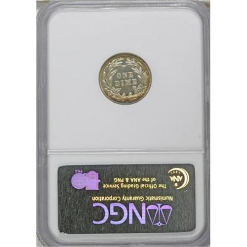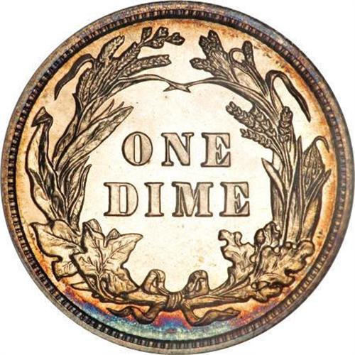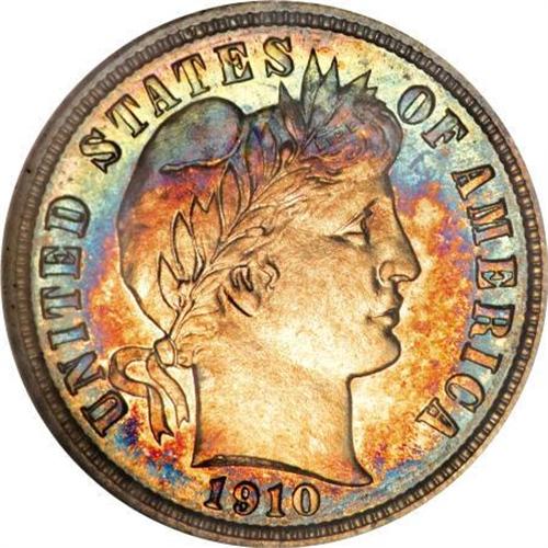 <B>1910 10C PR67 <img src="/images/star.gif" width="10" height="10" alt="" border="0"> NGC.</B></I> The assignment of the Star designation to this Superb Gem proof is not open to question. Gorgeous aqua-blue, purple, and gold-russet color occupies the obverse borders, flanking the essentially untoned center. The reverse is mostly brilliant, except for a whisper of aqua-blue and purple toning concentrated at the lower margin. A powerful strike leaves no design features incomplete, and immaculate preservation characterizes each face. Census: 1 in 67 <B><img src="/images/star.gif" width="10" height="10" alt="" border="0"></B></I>, 0 finer (11/07).<BR><BR><B>Coin Engraver:</B> Charles E. Barber<BR><BR><b>Shipping:</b> Coins & Currency (<a target="_blank" href="http://www.heritageauctions.com/common/shipping.php">view shipping information</a>)