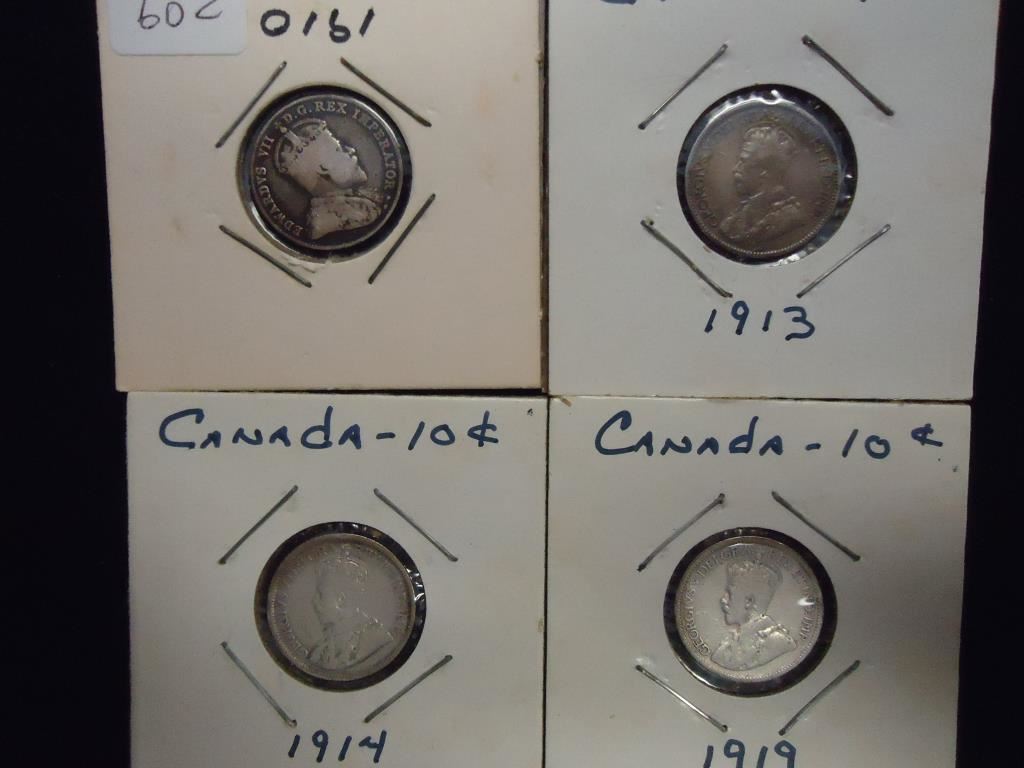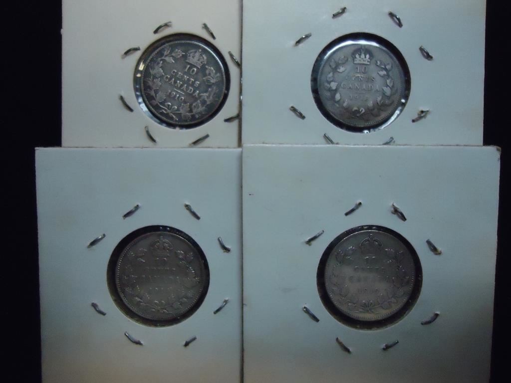 1910,13,14 & 19 CANADA SILVER 10 CENTS