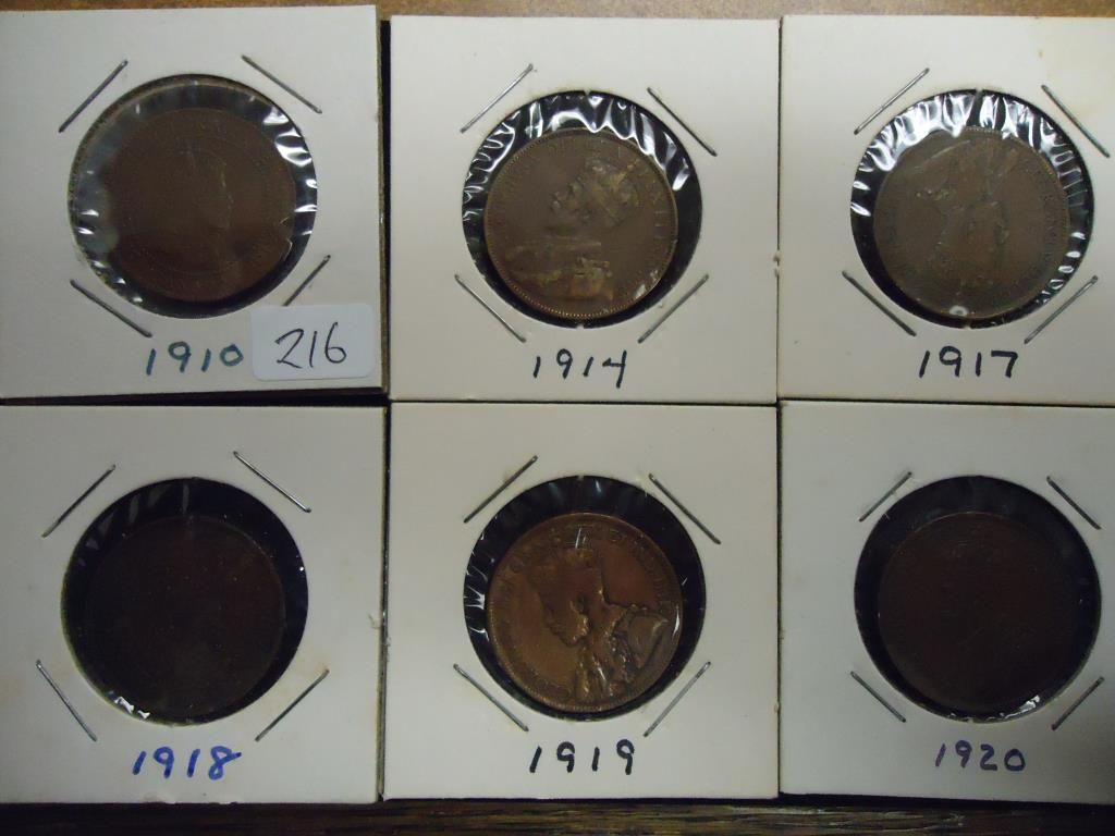 1910,14,17,18,19 & 20 CANADA US LARGE CENTS