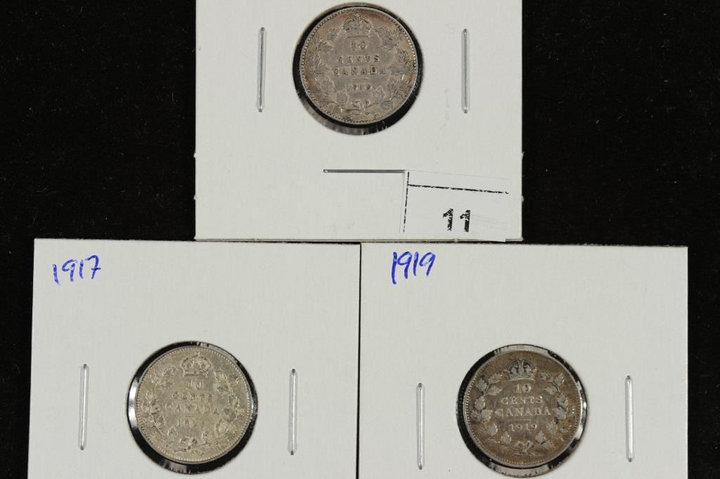 1910,17 & 19 CANADA SILVER 10 CENTS