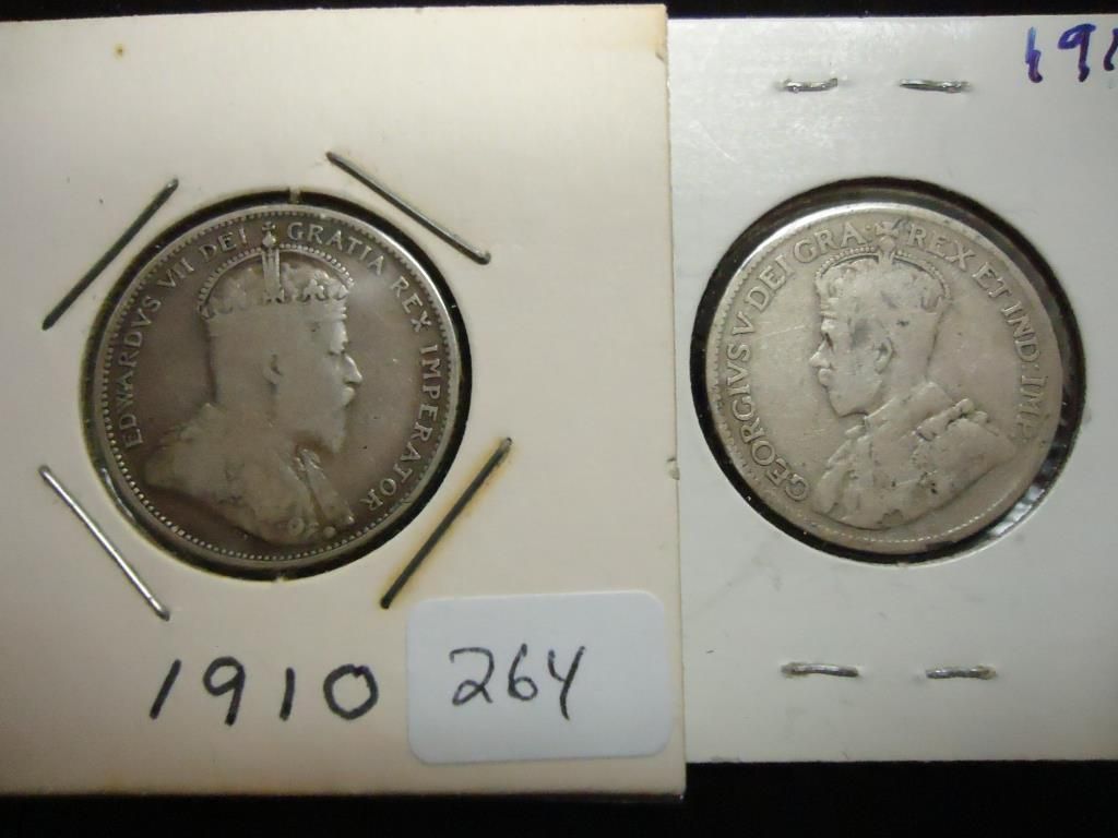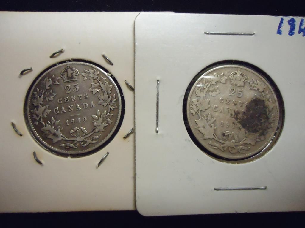 1910 & 1916 CANADA SILVER 25 CENTS
