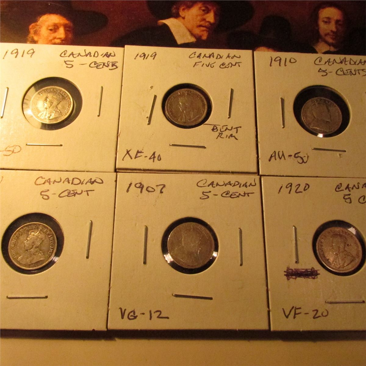 1910-1920 Silver 5C Canada Group of 6 Pieces Diverse Grades
