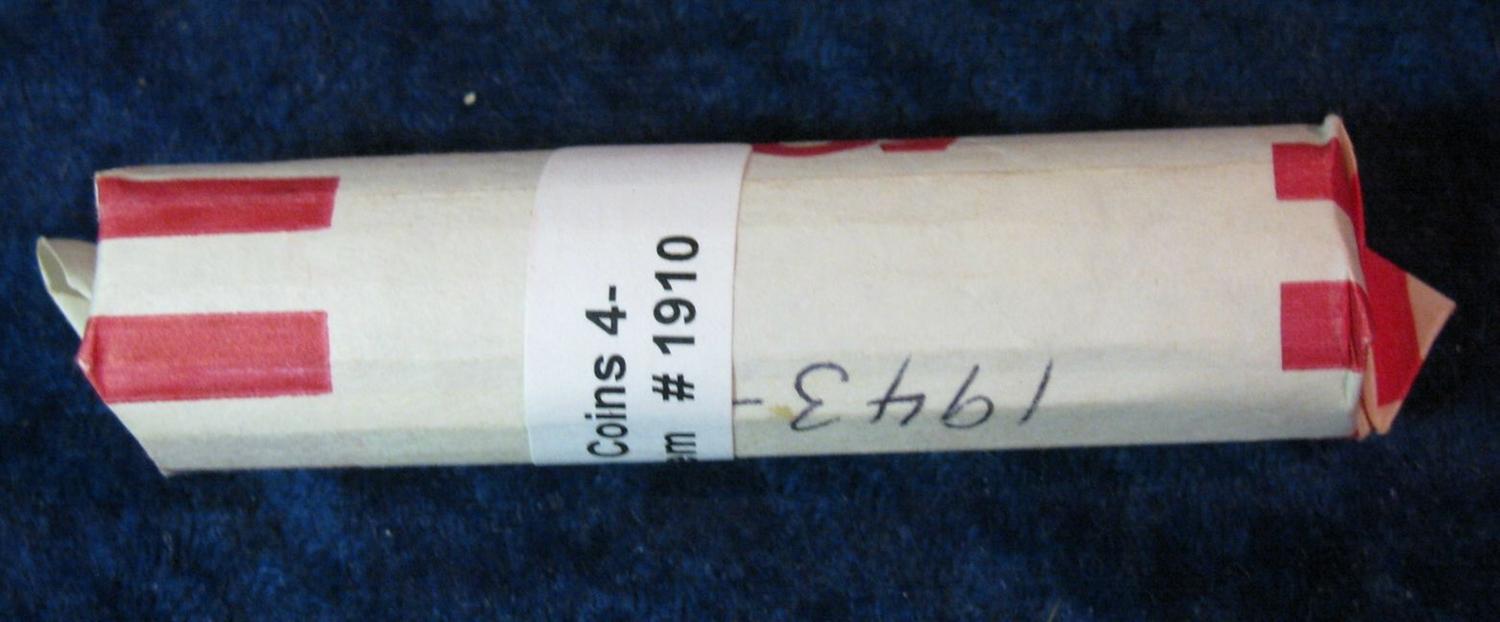 1910. 1943 D Solid-date Roll of Lincoln Cents.