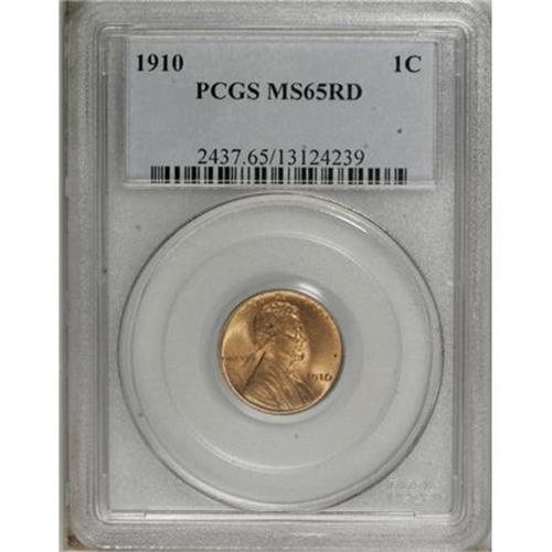 <B>1910 1C MS65 Red PCGS.</B></I> PCGS Population (341/148). NGC Census: (135/97). Mintage: 146,801,216. Numismedia Wsl. Price for NGC/PCGS coin in MS65: $180. (#2437)<BR><BR><b>Shipping:</b> Coins & Currency (<a target="_blank" href="http://www.heritageauctions.com/common/shipping.php">view shipping information</a>)