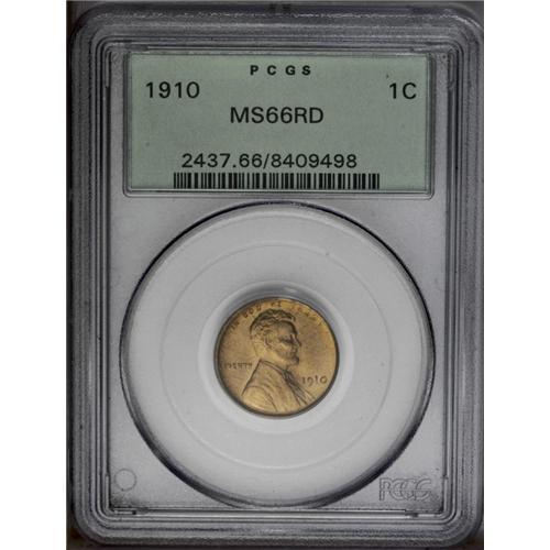 <B>1910<1C> MS66 Red PCGS.</B></I> Attractive copper-gold luster adorns both sides of this Premium Gem, and the design elements are sharply impressed. A few small russet flecks are detected. Certified in a green label holder.