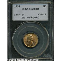 <B>1910 1C MS66 Red PCGS.</B></I> Brilliant and sharply struck with bright orange mint color and excellent eye appeal.
