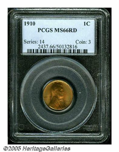 <B>1910<1C> MS66 Red PCGS.</B></I> Peach and lime colors compete for territory throughout this highly lustrous and razor-sharp premium Gem. The fields are unabraded, and the eye appeal is magnificent.