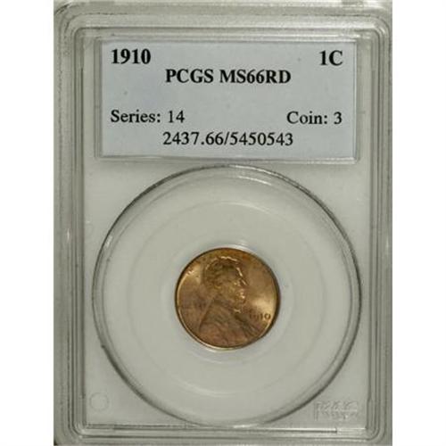 <B>1910 1C MS66 Red PCGS.</B></I> A vibrant copper-orange exemplar that displays swirling luster and excellent detail. An immensely appealing survivor from this second-year issue. PCGS has graded only 17 finer Red pieces (10/07).<BR><BR><B>Coin Engraver:</B> Victor D. Brenner<BR><BR><b>Shipping:</b> Coins & Currency (<a target="_blank" href="http://www.heritageauctions.com/common/shipping.php">view shipping information</a>)