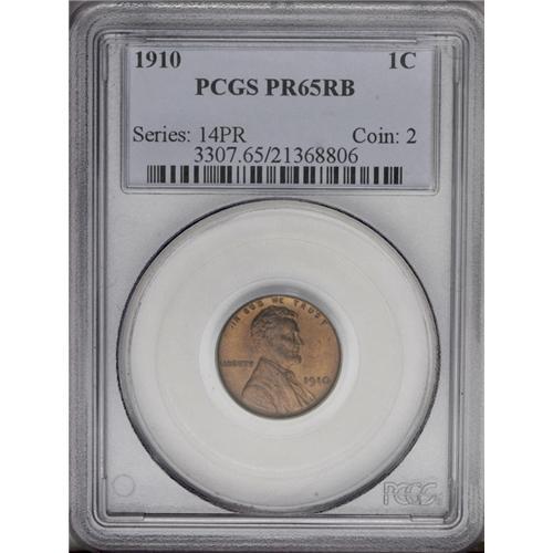 1910 1C PR65 Red and Brown PCGS. Copper-orange patinat 1910[1C] PR65 Red and Brown PCGS.